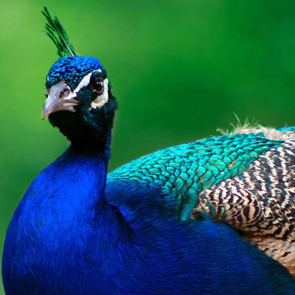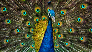 A symbol of grace and beauty, famed for its dazzling tail feathers