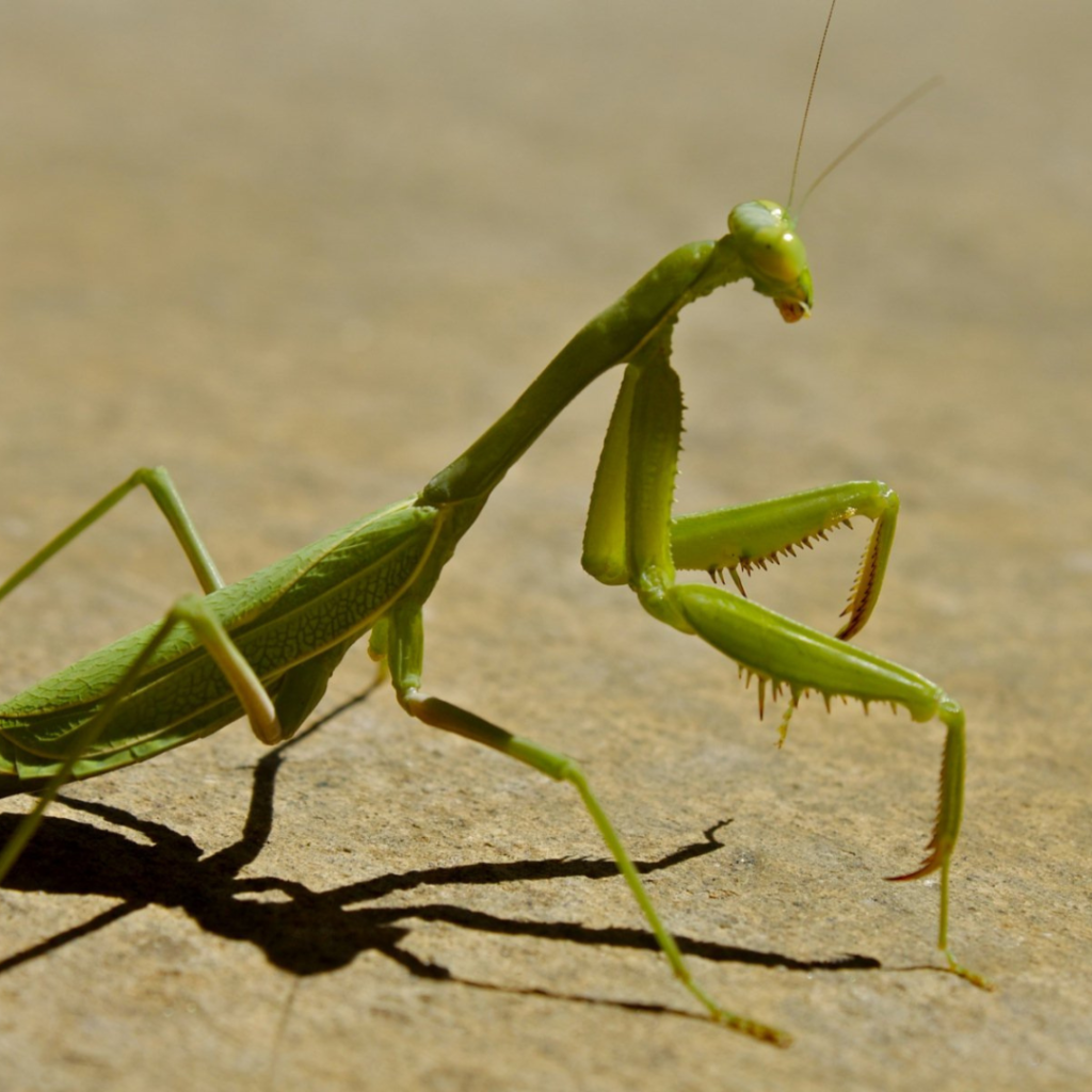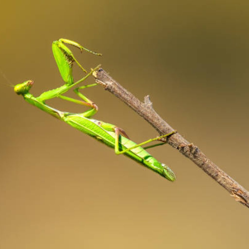 Praying Mantises inhabit a variety of environments, including temperate and tropical regions. They prefer areas with plenty of vegetation, which provides cover and hunting grounds. These insects are primarily solitary and exhibit ambush predation, staying still and camouflaged until they capture prey, such as flies, grasshoppers, and other insects.